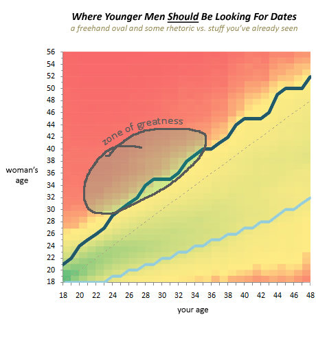 I loved the conclusion of the study, which encouraged men to date women their own age or older, putting them into the “zone of greatness.” Yes, please.